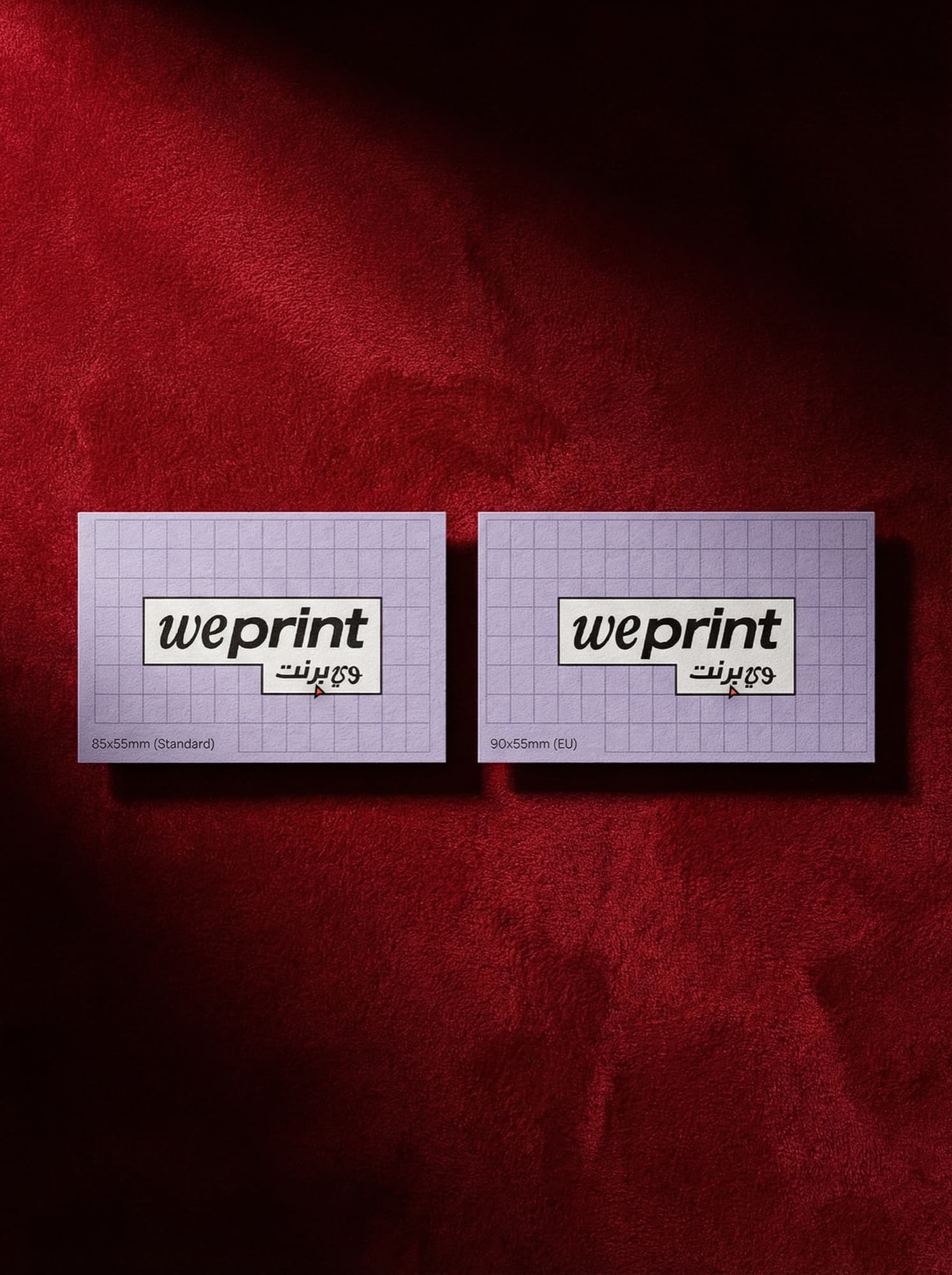 85x55mm (Standard) · 90x55mm (EU)400gsm Gloss / 400gsm Matte / 350gsm UncoatedUV موضعي / لمسة ناعمة / Foil Gold